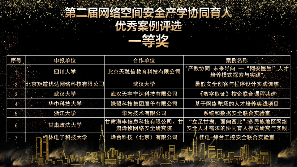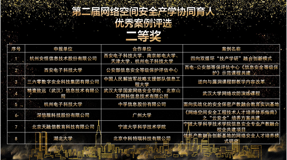 2022年4月16日,由教育部高等学校网络空间安全专业教学指导委员会产学合作育人工作组主办、四川大学与华中科技大学共同承办的“第二届网络空间安全产学协同育人优秀案例评选会”召开了线上会议,近日评选结果正式公布。