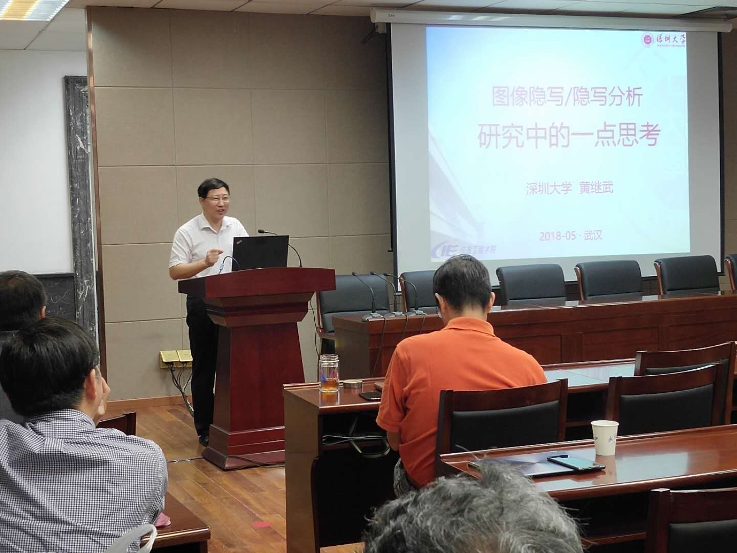 图2黄继武教授讲述图像隐写和隐写分析研究的一点思考