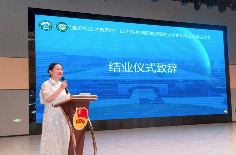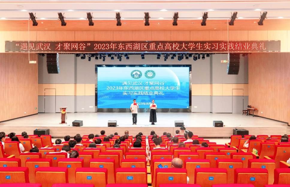 (学工办 朱承基)2023年8月4日下午,2023年东西湖区“遇见武汉·才聚网谷”重点高校大学生实习实践结业典礼在东西湖区工人文化宫隆重举行。中共东西湖区委组织部副部长、区委编办主任余畅、 pornhub