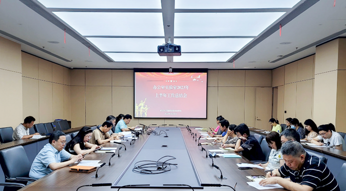 召开2022-2023学年度第二、三学期办公室实验室工作总结会议,就上半年工作进行小结,对暑期工作进行部署。学院纪委书记杨旭升,行政副院长彭正明、办公室实验室全体工作人员参加会议。