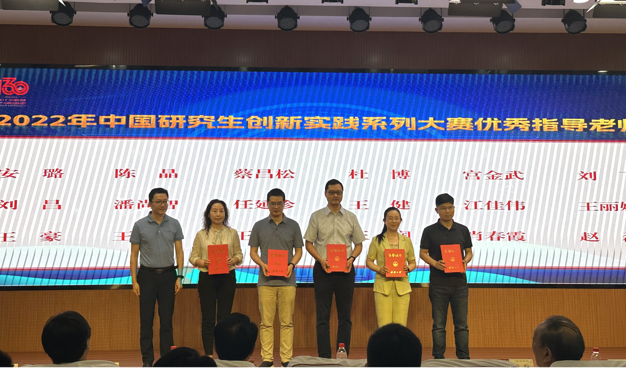 2022年中国研究生创新实践系列大赛先进集体”, 陈晶、任延珍、王丽娜、王正、汪润、赵磊获评“优秀指导教师”,瞿成雄、刘路、文贝西获评“先进工作者”。