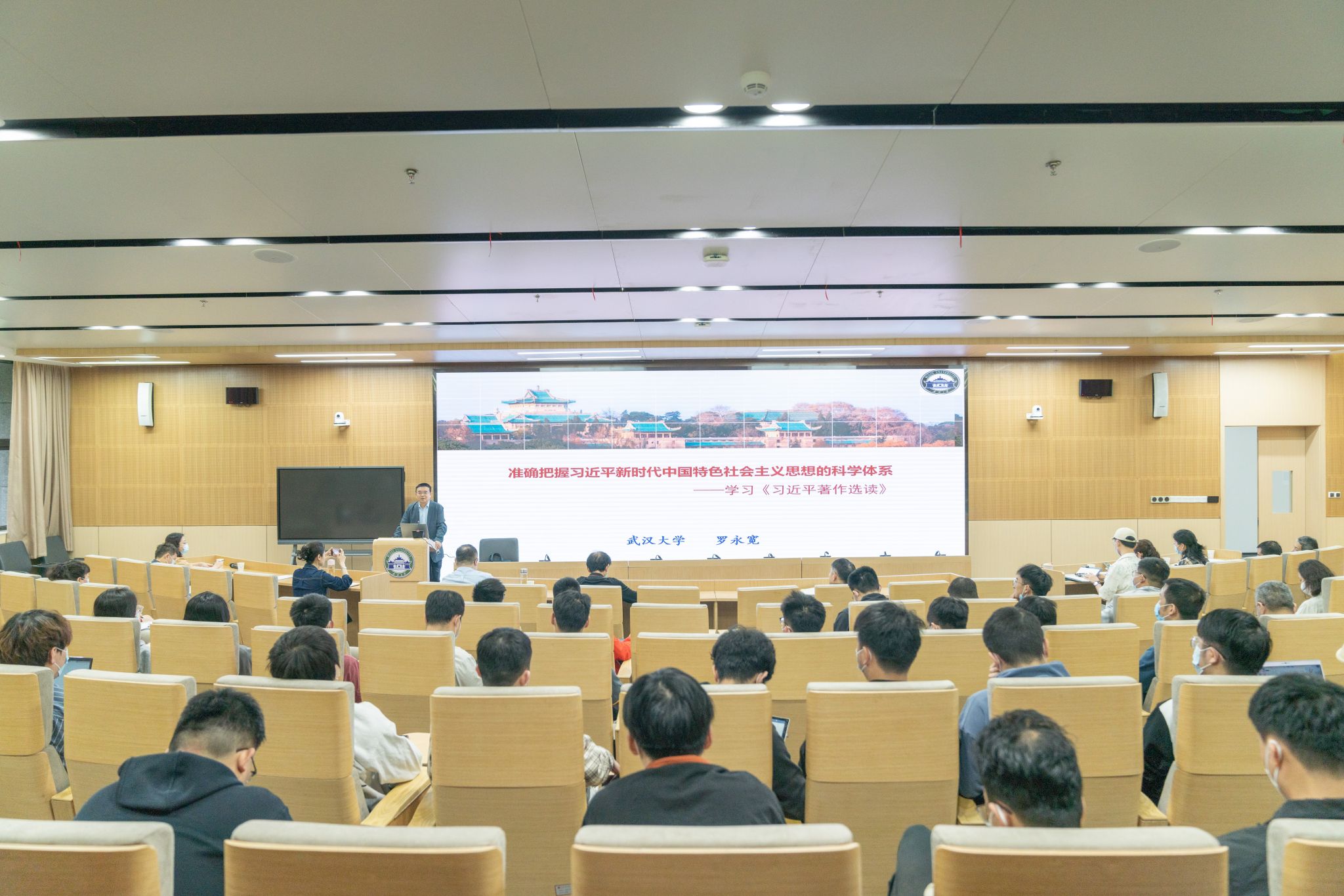 马克思主义学院党委书记罗永宽教授作题为“准确把握习近平新时代中国特色社会主义思想的科学体系——学习《习近平著作选读》”的报告。学院党委委员、领导班子成员、全体教职工党员、学生党员代表、入党积极分子及发展对象代表参加学习。讲座由学院党委副书记刘嘉梅主持。