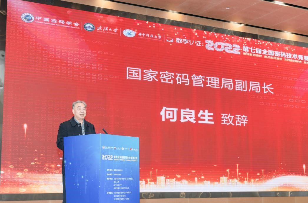 颁奖典礼上,国家密码管理局副局长何良生致辞。他指出,本届竞赛的举办非常成功,参赛团队数量创历史新高,这充分显示了参赛团队对推动国产密码技术创新的热情和信心,也展示了我国密码技术自主创新的优势。