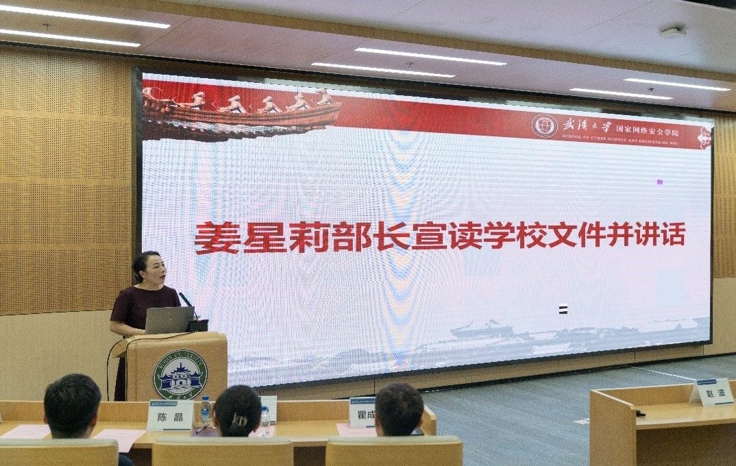 行政副院长,彭正明同志任保卫部副部长。姜部长希望两位同志尽快熟悉新工作,早日适应新岗位。同时姜部长代表学校对学院领导班子和全体教职工提出三点要求:一是进一步加强学习,提高站位,着力建设团结协作坚强有力的领导团队;二是要奋进争先,真抓实干,结合学院目前所存在的发展短板,认真落实习近平总书记关于网络强国的重要批示精神,大力推进学校学院各项事业的高质量发展;三是希望全院师生精诚团结支持学院领导班子的工作,产出更多高质量的科研成果,培养更多高质量的网安人才,早日建成国际知名国内领先的一流网络安全学院,为学校的双一流建设和高质量发展做出更大贡献。