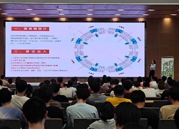 接下来,党委副书记刘嘉梅从三个“注意”强调了入住园区后注意事项。一是要注意行为规范,筑牢底线思维。园区学习、生活环境都相对宽松,但是一定要根据学院相关规定,牢固树立“安全第一、预防为主”的思想,严格尊重规定要求;二是要注意提前规划,合理安排好学习与生活。进入到高年级,每个人都面临是毕业、就业、升学等选择,如何做好规划,用好园区丰富的学习、锻炼资源,努力成为“更优秀的自己”是现阶段面临的“难题”,要做好这道题,既要有想法,更需要有行动;三是要注意沟通交流,遇到问题难题要主动寻求解决办法。园区的住宿相对本部的住宿较为分散,双校区办学模式让一些事务性的工作也增加了时间成本。一方面学工队伍会积极整合优化办事流程,另一方面同学们在遇到具体问题时也要积极向同学或者辅导员、老师们求助,遇到问题不可怕,关键要提升解决问题的能力。最后,学工办余艳霞副主任也对宿舍空调使用、安全用电等容易出现的问题做进一步的提醒。