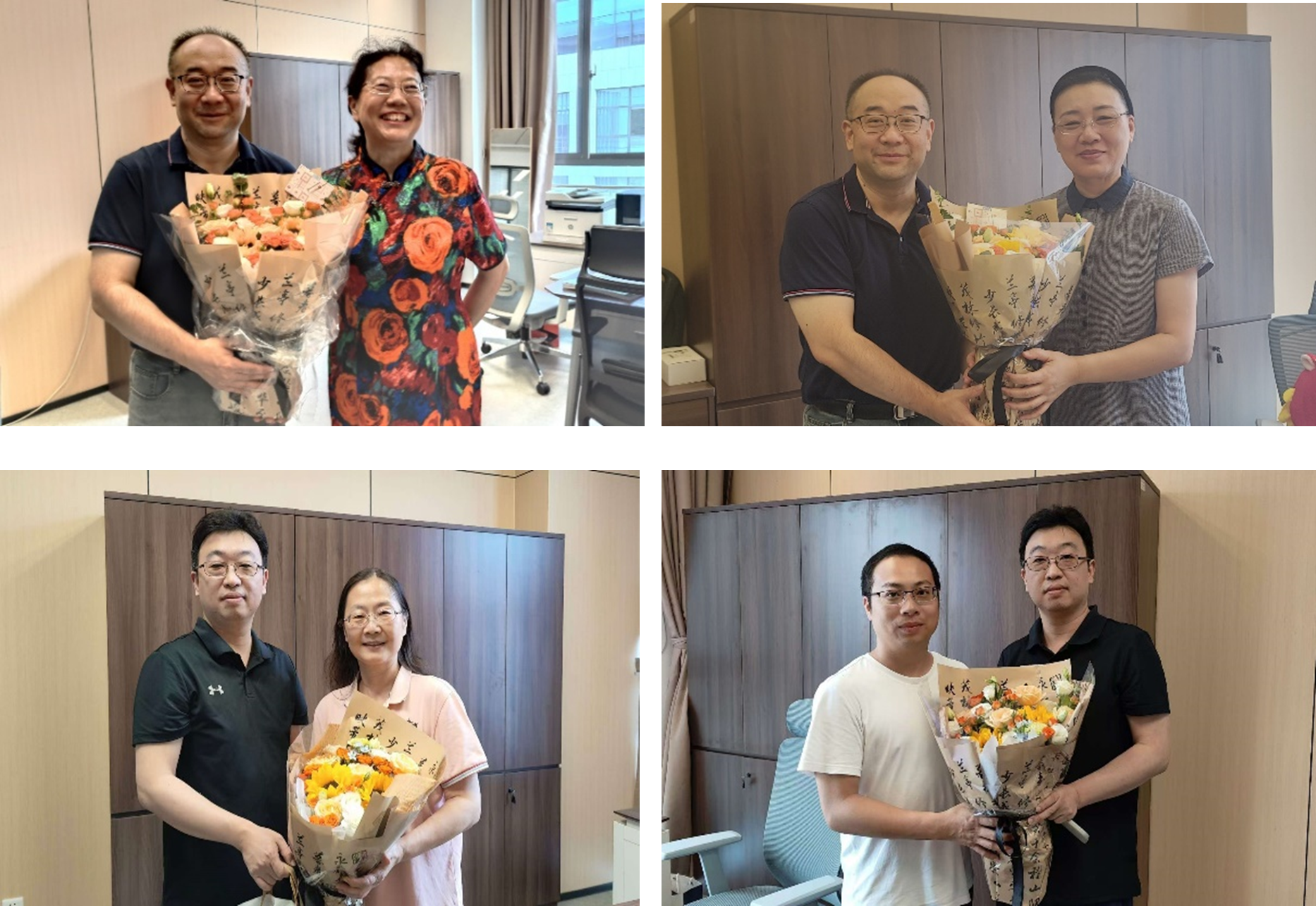 赵波书记和王骞院长为教师送上鲜花和节日祝福