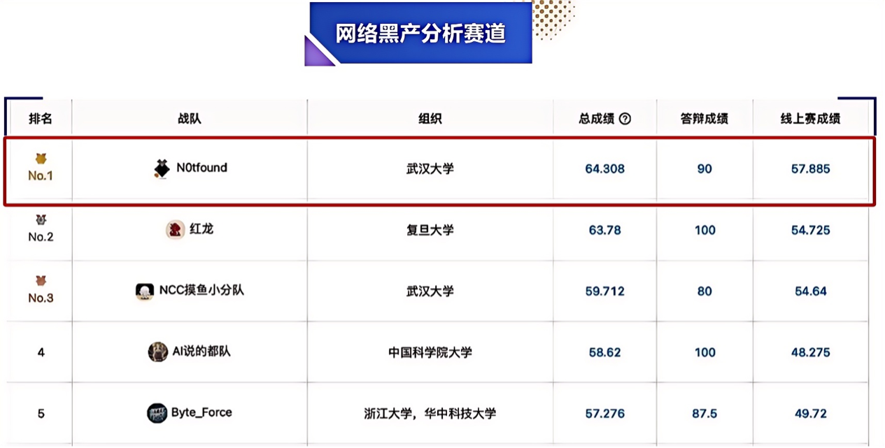 冠军 | N0tfound | 网络黑产分析 | 钟岩、陈逸凡、李泽皓、林水利、周望 | 陈刚 |