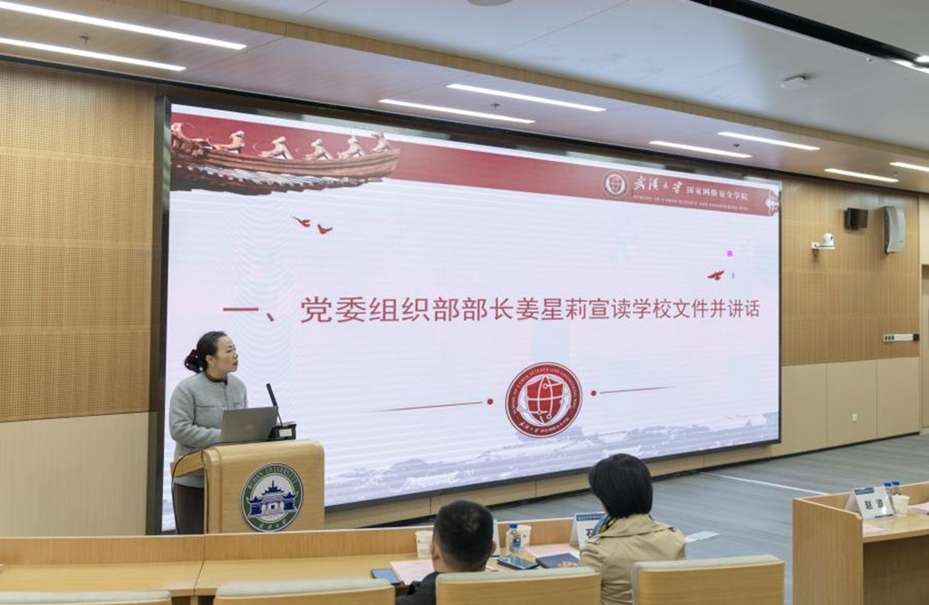 最后,赵波书记代表学院向学校表态,网安学院将在学校党委行政的领导下,凝心聚力担使命、团结奋进抓落实,继续保持学院优秀的发展势头,在一流学院的建设、学科发展、师资队伍建设、拔尖创新人才培养等方面取得新的成绩,为培养网安人才做出网安人新的贡献。