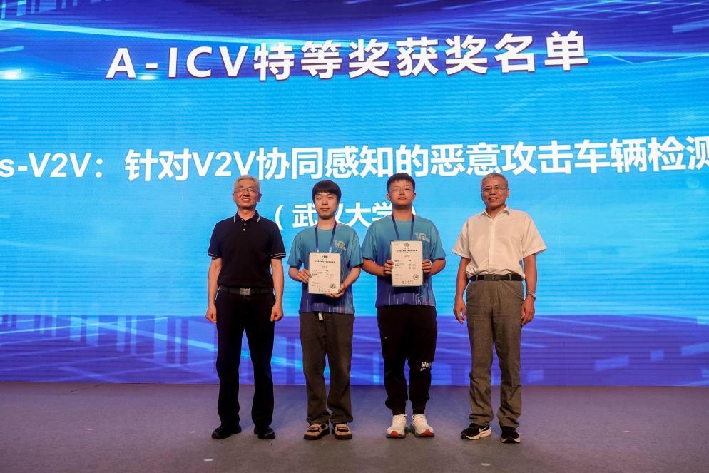 获得大赛特等奖的作品是 “Aegis-V2V:针对V2V协同感知的恶意攻击车辆检测系统”。团队成员包括余意、赵铭萱、吴亦珂、邓鹏、史韵。作品聚焦于自动驾驶领域,针对车车通信(V2V)中可能出现的恶意攻击车辆,提出了高鲁棒性假设下的自适应筛选机制,有效解决协同感知过程中因攻击导致的数据失真问题,实现了对恶意车辆的高效识别,保障自动驾驶协同感知的真实性与安全性。