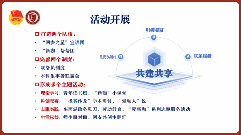 团委书记文贝西从功能型团支部建设背景、双校区办学模式、支部组织架构、场地支持等方面系统介绍团支部建设整体情况。
