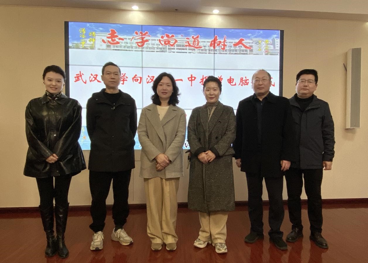 党委副书记刘嘉梅,设备捐赠单位代表、测绘遥感信息工程全国重点实验室党委副书记张婧一行前往武汉市蔡甸区汉阳一中、经济开发区第一中学捐赠电脑设备。